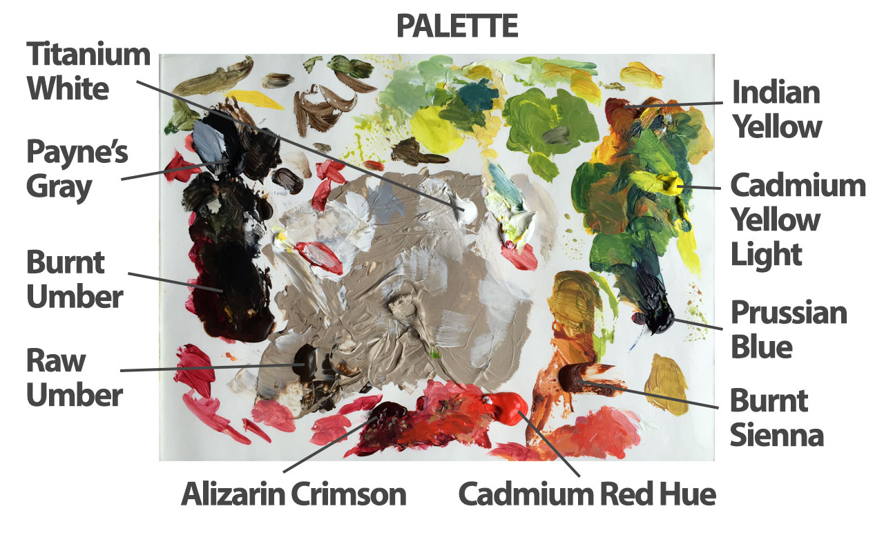 在绘画开始之前,通过分析主题或照片参考来确定所选择的颜色。在大多数情况下,额外的颜料将添加到调色板在绘画过程中。