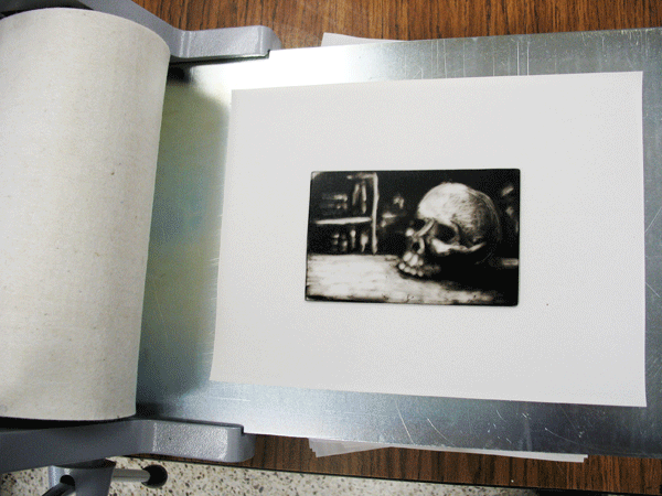 第六步:确保是正确的在你的印刷机的张力。把你的树脂玻璃印刷机和它与墨方。轻轻把粗纸上的玻璃。一旦下来,不要移动它。滚你的打印媒体一致的速度。